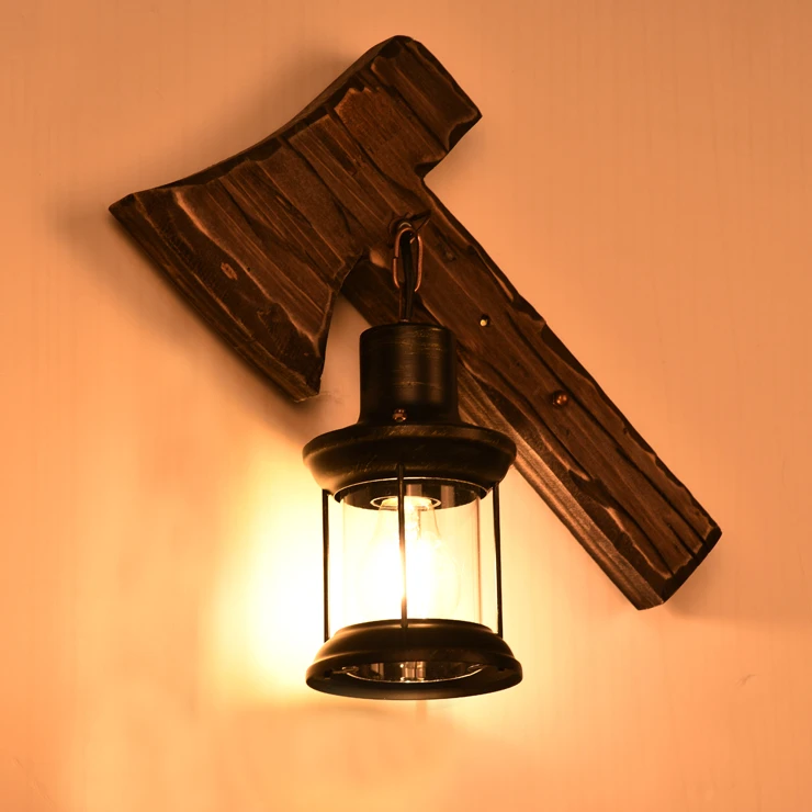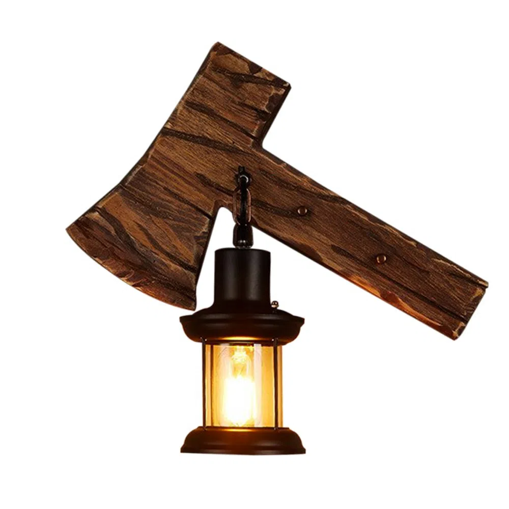 APLIQUE FAROL RETRO EN HACHA MADERA RUSTICA