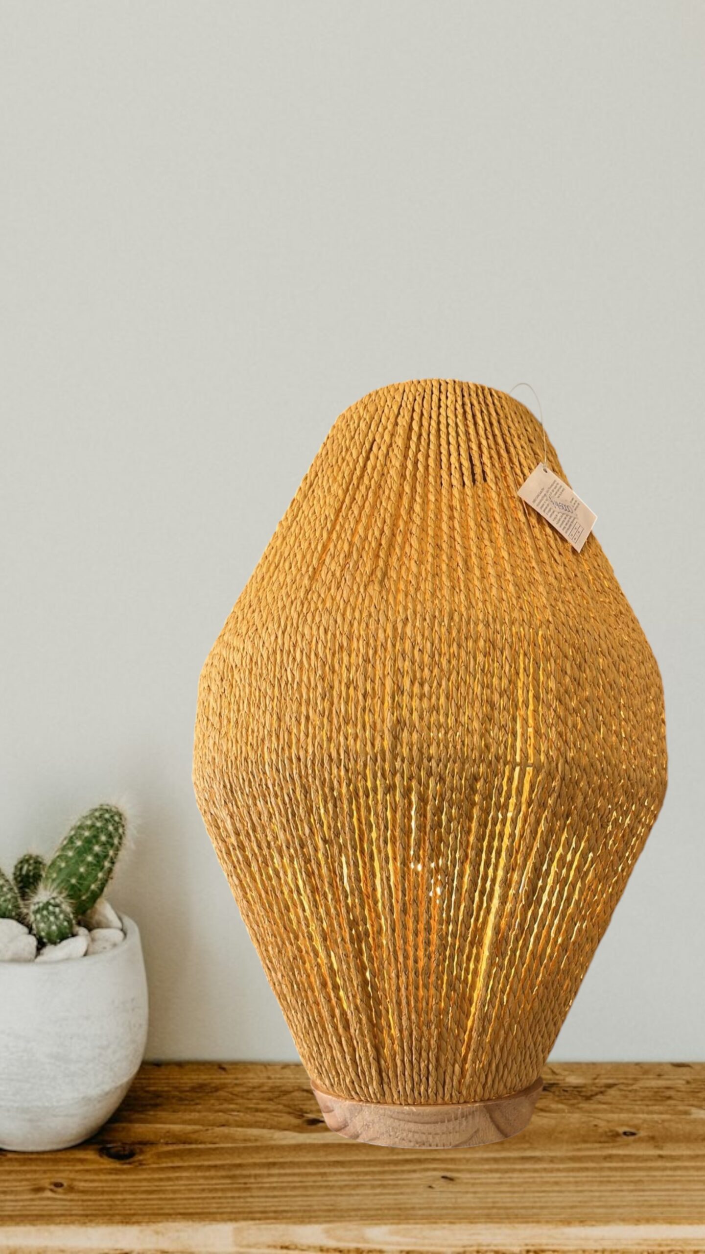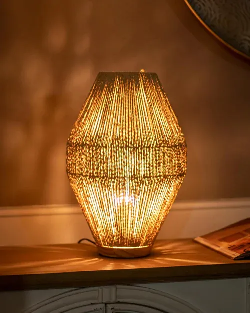 La Lámpara Brisa aporta un toque fresco y natural a cualquier espacio gracias a su pantalla tejida en algodón color orgánico, que difunde una luz suave y acogedora. Su diseño artesanal y cálido crea un ambiente relajado, ideal para veladores, escritorios o rincones especiales.