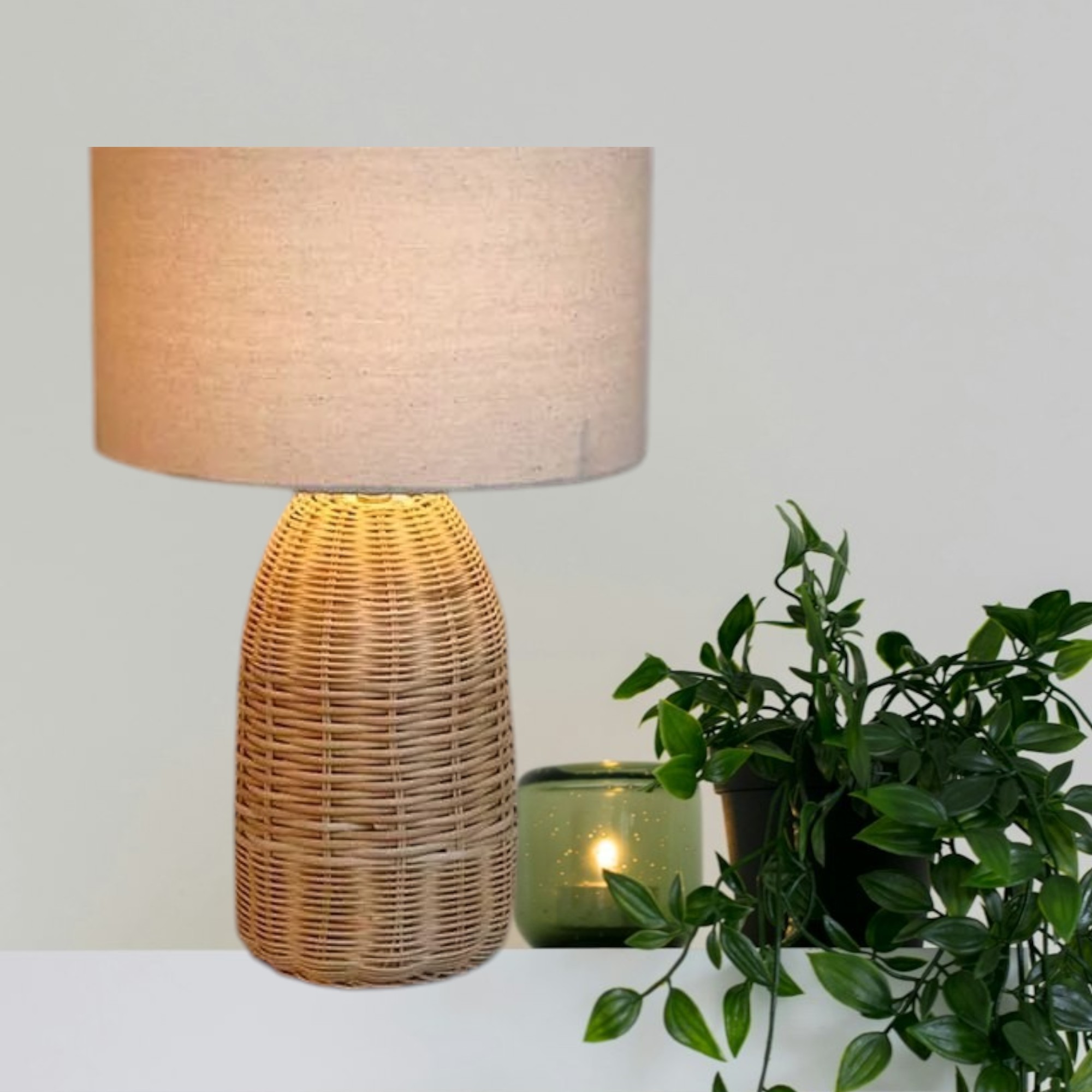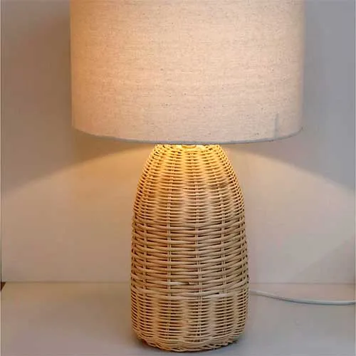 Lámpara Serena – Tejida con Base de Ratán y Pantalla Americana Texturizada